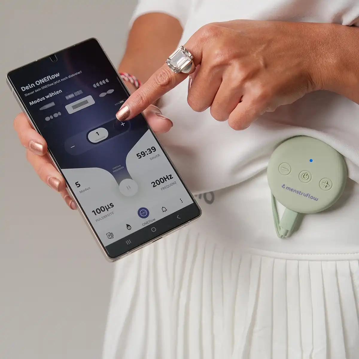 Control ONEflow anytime, anywhere – now even more discreetly via your smartphone. Whether you're on the go or sitting in a meeting, choose your favorite mode, adjust the intensity, and continue your day pain-free.